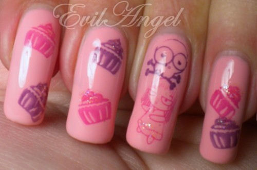 for the images, using BM14 for the cute lil' cupcakes and Konad m13 for my Zombie doll and her Skully friend.